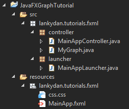 Once you have sorted out your project structure remember to rename the paths in your code to match the structure and names you have chosen. This includes the path in MainAppLauncher and the paths to the controller and css in MainApp.fxml.