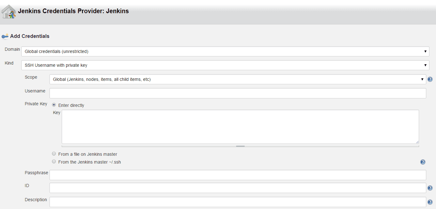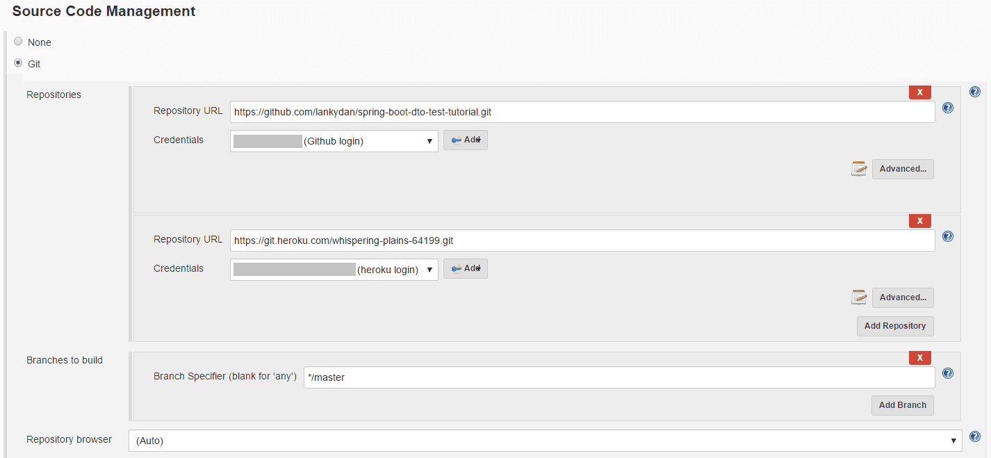 The credentials I used for the GitHub repository were simply my GitHub username and password, although there are plenty of other options available if you wish to use them. The credentials for Heroku on the other hand required a SSH key and a bit of extra setup.