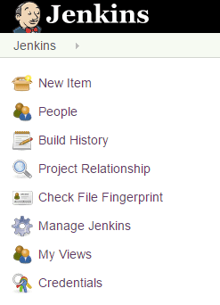 You should now be able to access Jenkins by going to localhost:8080 in your browser. The screen is going to be pretty empty due to no builds existing, but everything we need at the moment can be found on the left-hand side of the screen.