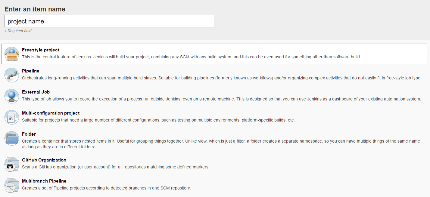 Enter whatever project name you wish to call the build and choose Freestyle Project. This will take you to it’s configuration screen where we need to define the process that was mentioned above.